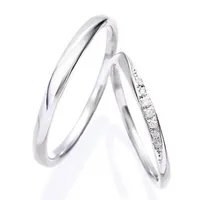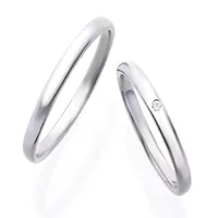 幅1.5㎜、地金は強度を加えたプラチナ900、シンプルな甲丸ストレートランのペアリング。細めのリングで控えめに可愛らしく、さりげなく使いたい方におすすめ。