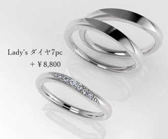 ウェーブラインの中では必ず候補にあがる:人気デザインMP247-248は最大幅2.2mm、厚み1.8mmの結婚指輪。7ピースのダイヤモンドを可愛らしく魅せるプラチナのボリューム感と、指に着けてはじめて感じる上品さが人気のポイント。
